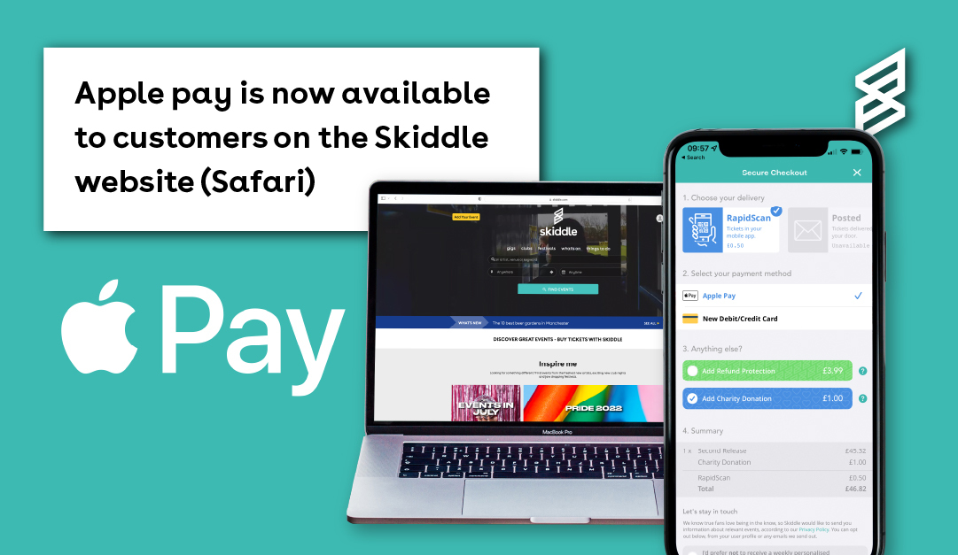 Apple pay is now available to customers on the Skiddle website (Safari)