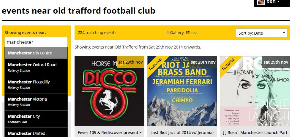 Visitors can now find events near to a specific point of interest, including 1,000s of smaller towns and districts, as well as tube stations, railway stations and football grounds.
