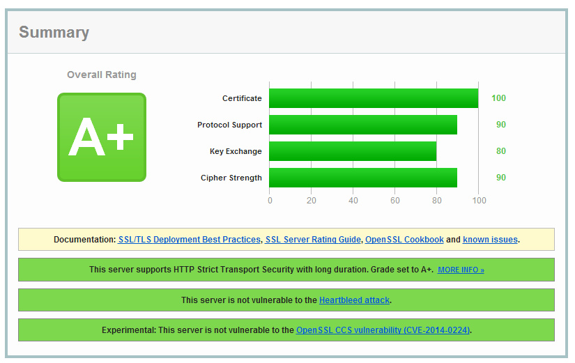 Our servers all score A or A+ and are also tested monthly for vulnerabilities, with patches applied within 24 hours. We also employ an external security company to perform penetration tests to check our security (this is a good guy purposely trying to ‘hack’ a website, so we can address any issues before the baddies find them!)