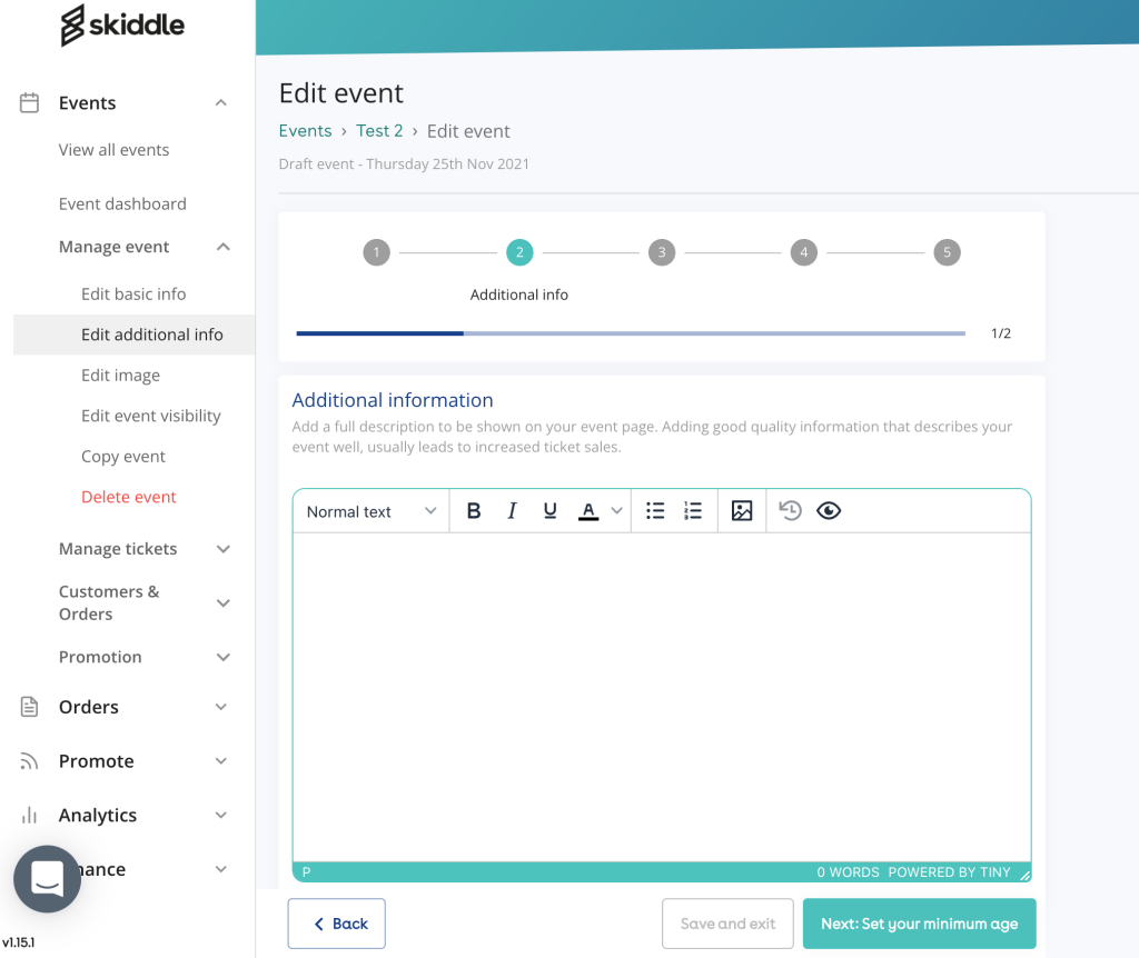 Confirming your event and publishing on Skiddle