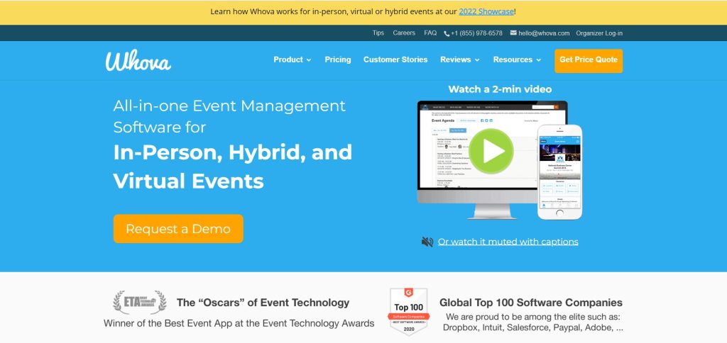 You can access Whova through their mobile app available to organisers and attendees, bringing efficiency to the event management process.
