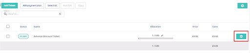 Locate your tickets within your event and click the cog icon on the tickets you wish to amend, followed by “edit”. Scroll down to “Stop selling tickets” and click “On a specific date & time” in order to specify when to stop selling!