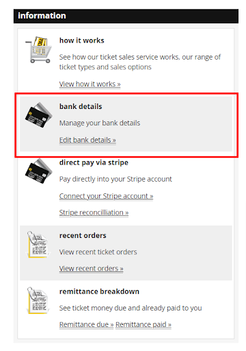 Ensure your bank details are current, correct and ready in time for remittance. Head to the sell tickets tab and click “Edit bank details” to make sure!